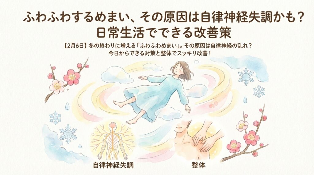【2月6日】冬の終わりに増える「ふわふわめまい」。その原因は自律神経の乱れ?今日からできる対策と整体でスッキリ改善!